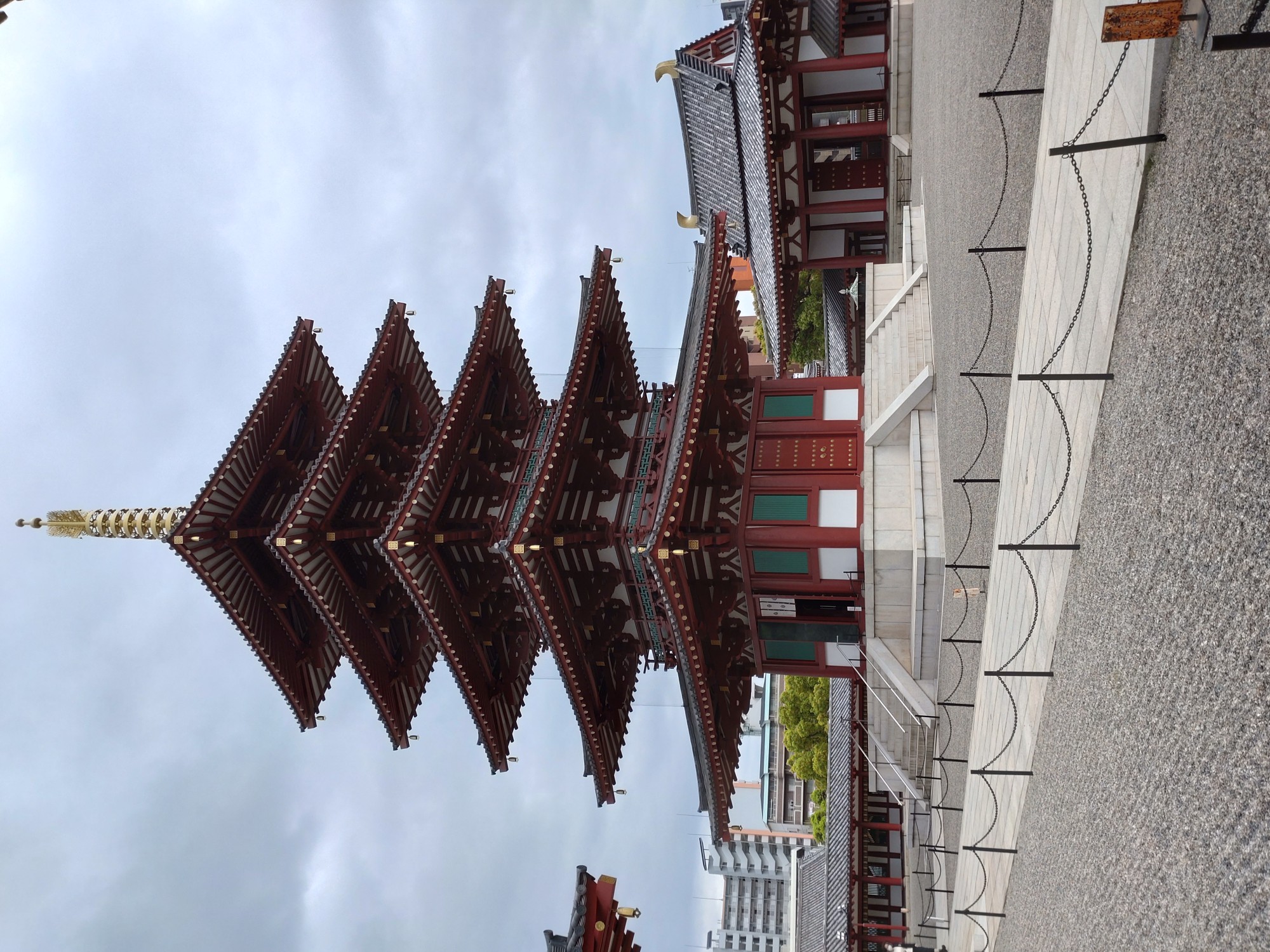 Shitennoji is the oldest state-sponsored Buddhist temple in Japan, having been founded in 593 by Prince Shotoku, the revered early champion of Buddhism. The temple complex has been rebuilt several times over the centuries, enduring as a spiritual refuge for the people of Osaka. From south to north, the Central Precinct opens via the Inner Gate. Inside is the five-storied pagoda, which stands 39 meters tall, topped by a 12-meter finial called a sorin.